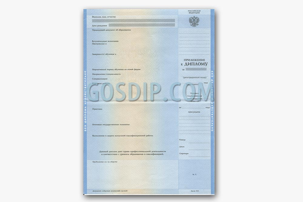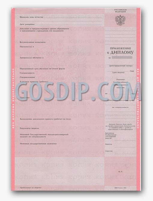 На нашем сайте можно купить приложение к диплому о высшем, среднем или начальном профессиональном образовании отдельно от диплома, чтобы «исправить» оценки в уже имеющемся документе. В наличии приложения всех существующих образцов на подлинных бланках Гознак. Мы гарантируем точность заполнения, полное соответствие печатей и штампов оригиналу. Обращайтесь. Доставим по Санкт-Петербургу уже на следующий день.